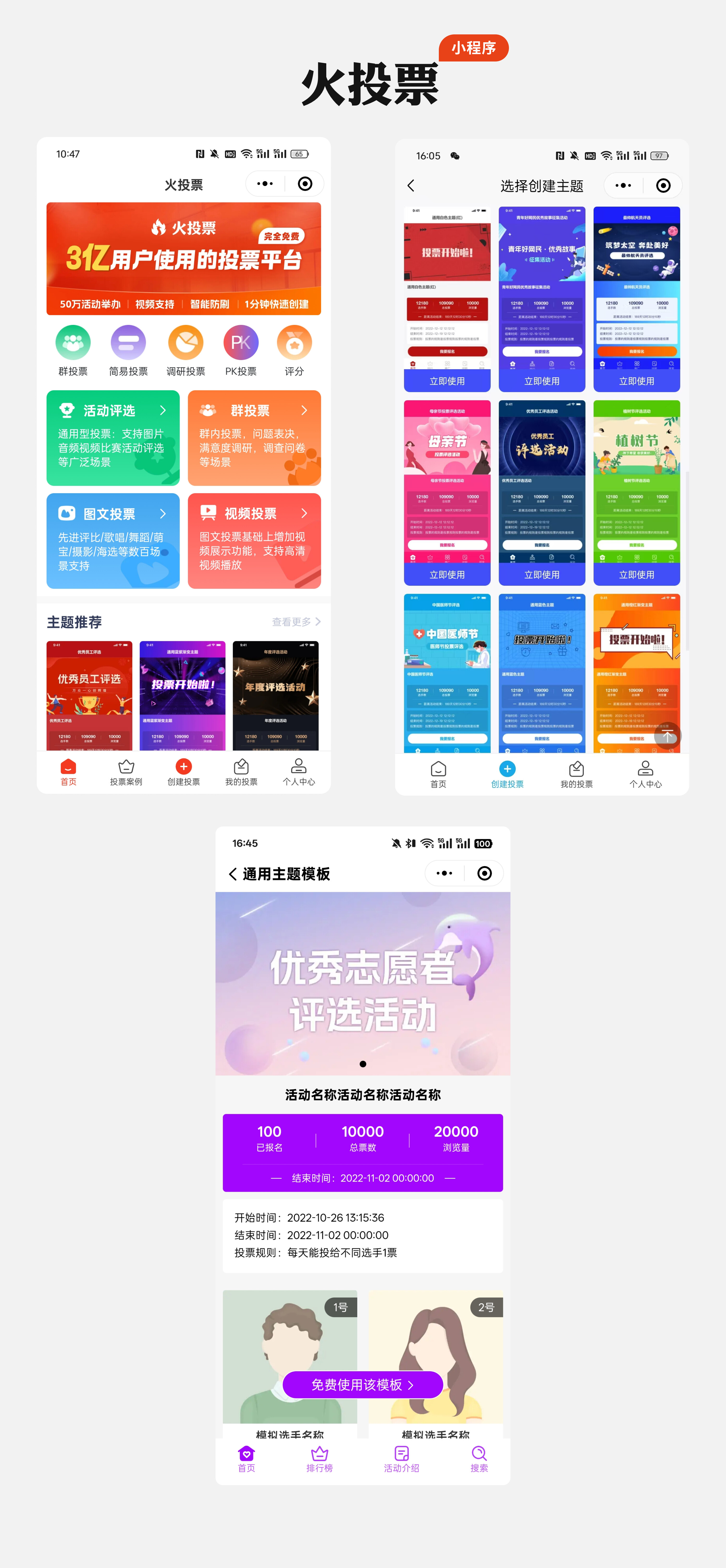 进入首页后,点击右下角 “创建活动”,在弹出的活动类型中选择 “活动评选”。选择适合中秋节的投票模板。