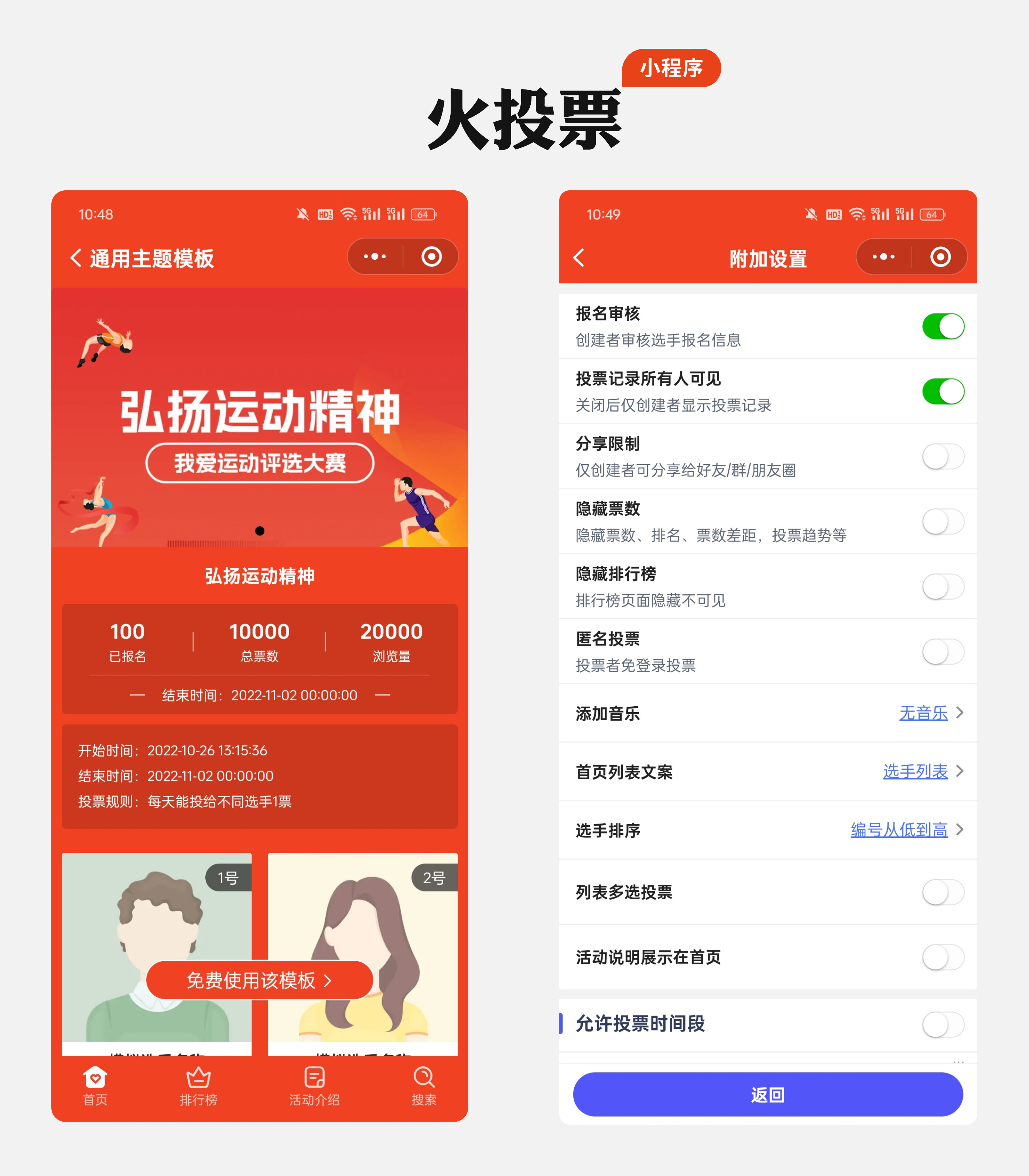 人物评选:评优秀员工、校园之星选 “人物评选模板”,自带事迹描述栏和照片上传区,还能补充评选维度;