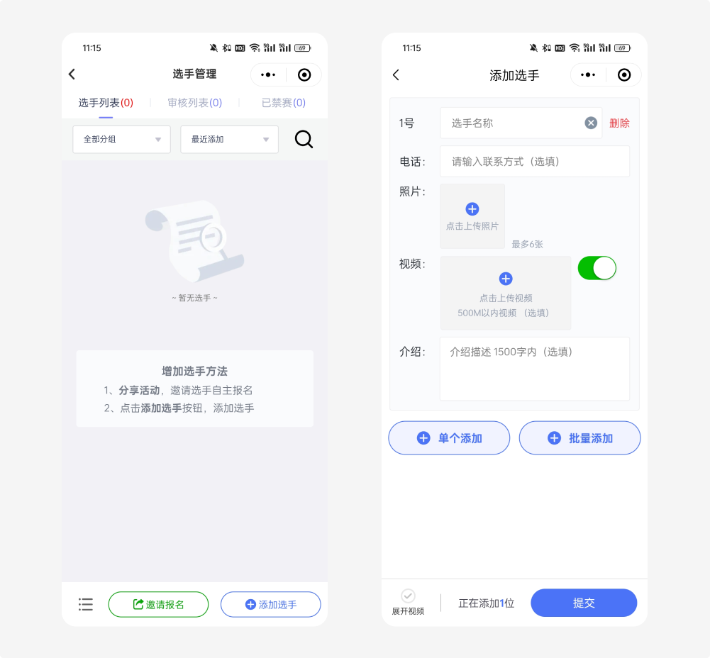 教育场景:选择“校园才艺大赛”模板,支持选手自主报名与作品上传。